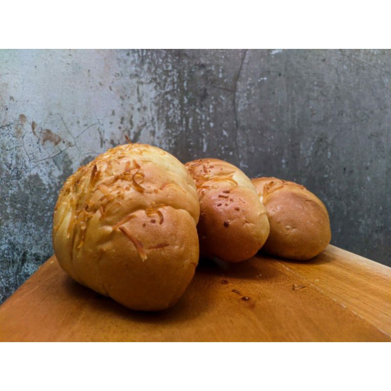 Roti rol manis gurih dan lembut dengan taburan keju tanpa filling isi di dalamnya.