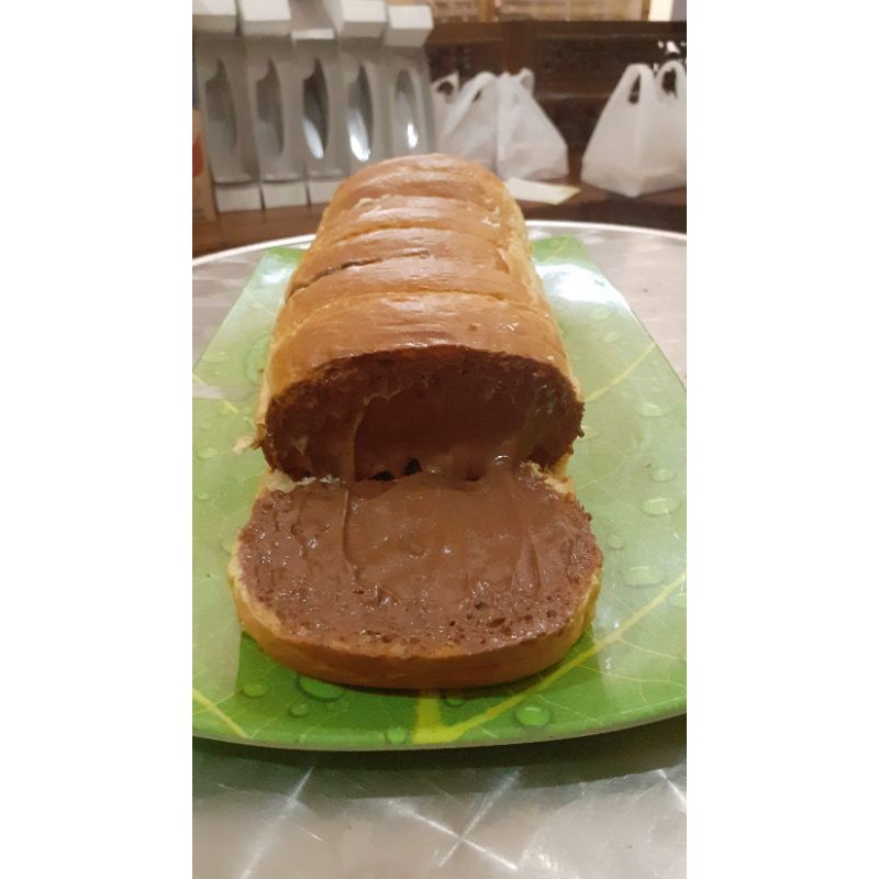 Homemade roti manis yang lembut dan empuk dengan isian krim coklat.
