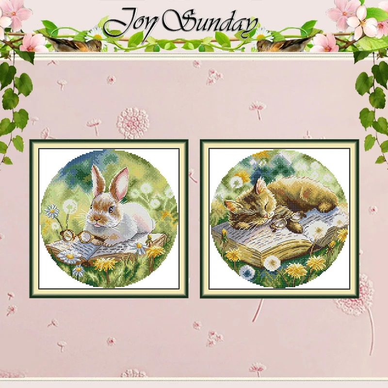 Round Animals Rabbit Cat Patterns Counted Cross Stitch Set DIY 11CT 14CT 16CT Stamped DMC Cross-stitch Kit Embroidery Needlework