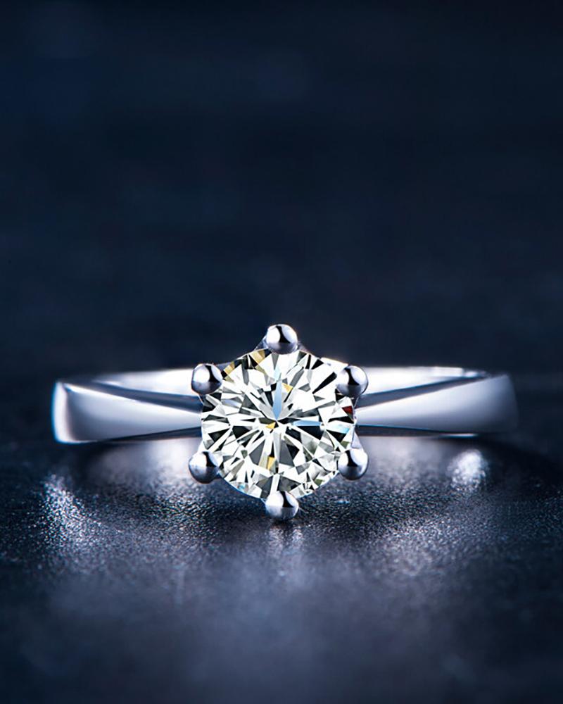 Round Cut Rhinestone Adjustable Rings, Silver