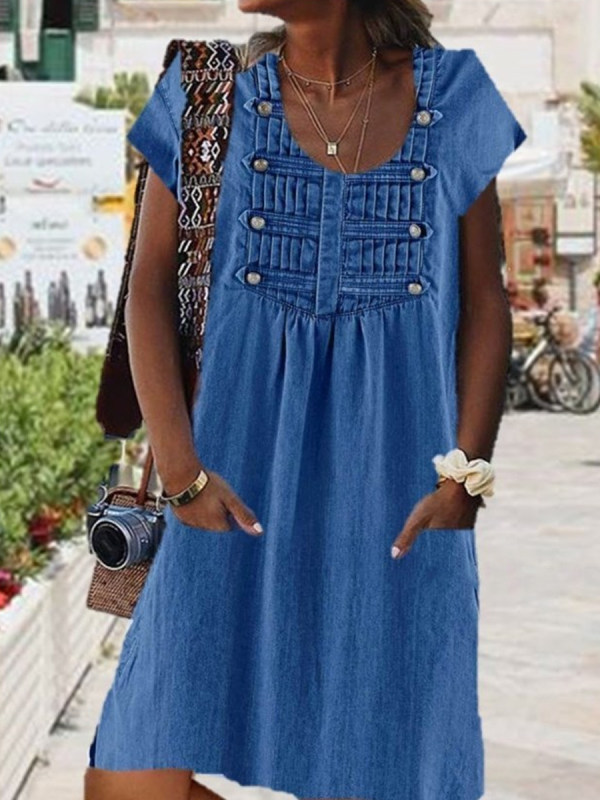 Round Neck Button Dress