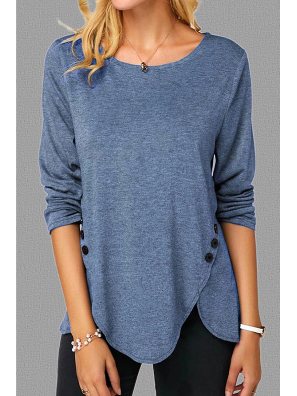 Round Neck Irregular Hem Plain T-shirt