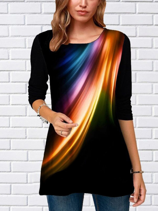 t-shirts,round neck print loose long sleeve t-shirt