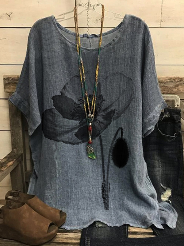 t-shirts,round neck print short sleeve blouse