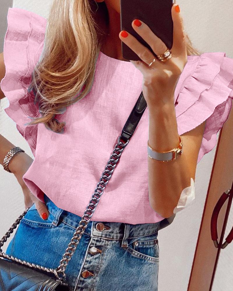 Round Neck Ruffles Flutter Sleeve Blouse, Pink
