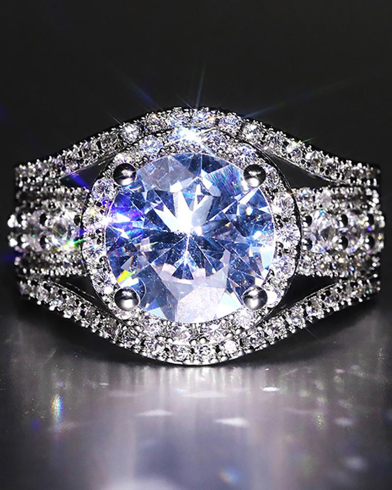 Round Shaped Allover Rhinestone Ring, Silver
