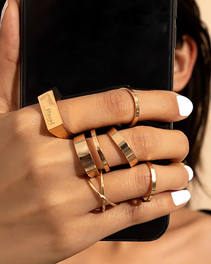 Round Shaped Minimalism Adjustable Rings Set, Gold