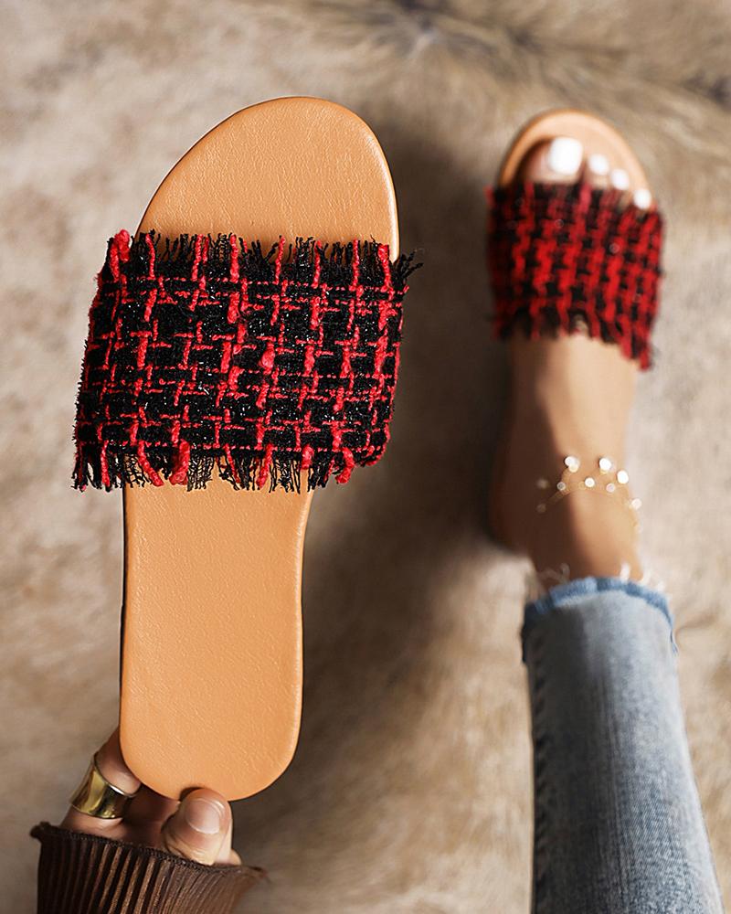 Round-toe Multicolor Weaves Strap Slippers, Red
