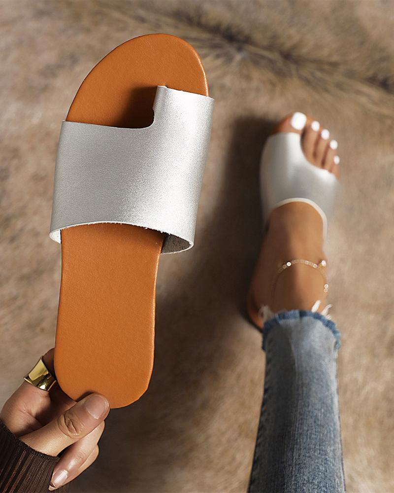 Round-toe Solid Color Toe Post Slippers, Silver