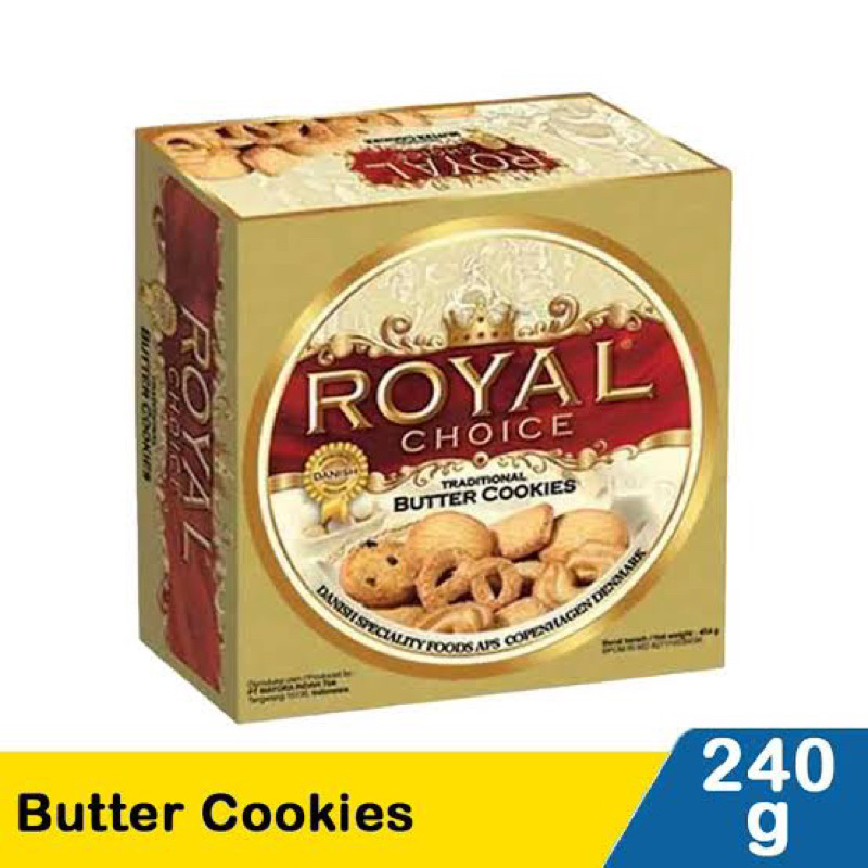 Royal Choice Kaleng merupakan butter cookies dengan rasa mentega yang gurih dengan taburan gula. Butter cookies ini terbuat dari bahan-bahan pilihan dan diproses secara higienis sehingga aman untuk dikonsumsi. Ideal untuk dinikmati saat santai bersama keluarga. Kemasan 240 gr.