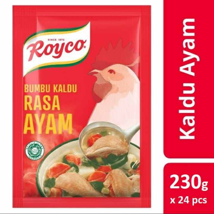 merupakan royco bumbu kaldu pelezat serbaguna yang terbuat dari bahan-bahan dan rempah pilihan, termasuk daging ayam pilihan yang direbus lama. menghadirkan rasa kaldu ayam yang mantap pada semua jenis masakan anda