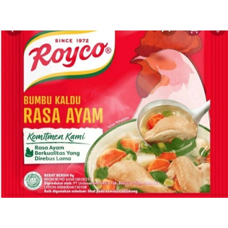 Royco Kaldu Ayam & Sapi dibuat dengan daging ayam dan sapi yang direbus lama memberikan kaldu mantap dan rasa ayam lezat untuk semua masakan