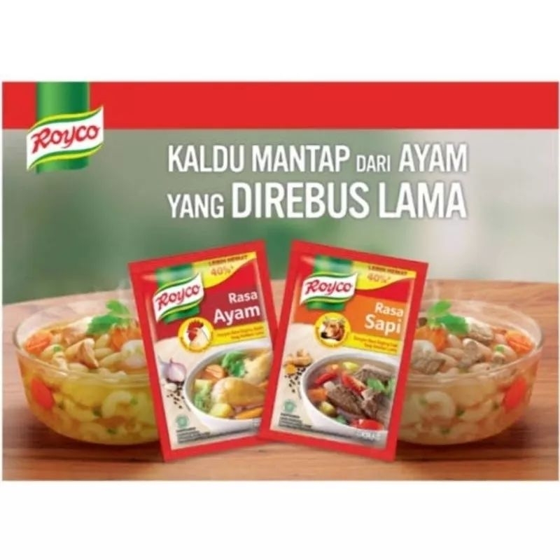 bumbu yang memberi rasa sempurna dan alami pada makanan. Royco dibuat dari bahan asli pilihan. Penyedap makanan ini mudah larut dalam masakan dan dibuat dengan bahan alami. Bumbu kaldu penyedap ini tidak menggunakan bahan pengawet.