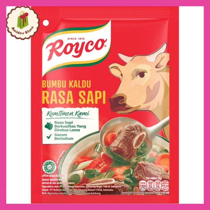 Royco Bumbu Kaldu Penyedap Rasa Sapi 94 g adalah salah satu inovasi bumbu masakan Indonesia berbekal pengalaman panjang selama 30 tahun yang diracik dari bahan-bahan dan rempah pilihan, seperti daging sapi pilihan yang direbus secara baik. Mudah larut dan meresap sehingga membantu memberi rasa kaldu yang mantap pada masakan Anda serta membantu memasak dengan mudah dan menyenangkan.