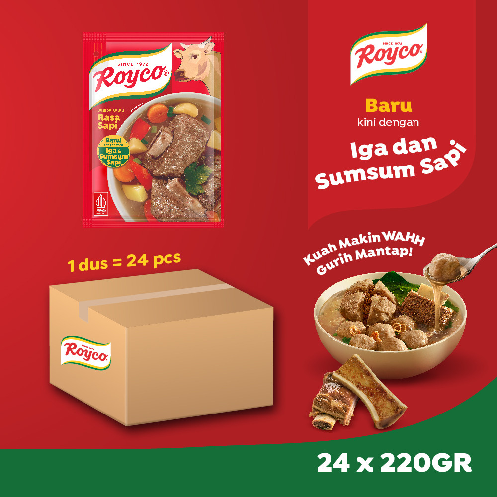 Royco Bumbu Kaldu Penyedap Rasa Sapi Beryodium 220g (Isi 24)