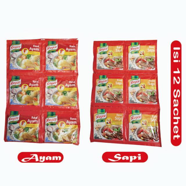 Royco Bumbu Kaldu Rasa Ayam/Sapi 8gram 1 Renceng isi 12 Sachet