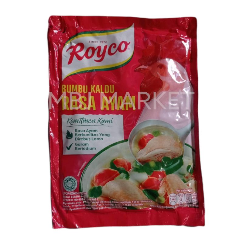 Royco Kaldu Ayam merupakan bumbu pelezat masakan yang terbuat dari bahan-bahan dan rempah pilihan, termasuk daging ayam pilihan yang direbus lama. Memberikan rasa kaldu yang mantap pada masakan Anda. Tambahkan Royco Kaldu Ayam ke dalam masakan rumah. Mudah larut dalam masakan.