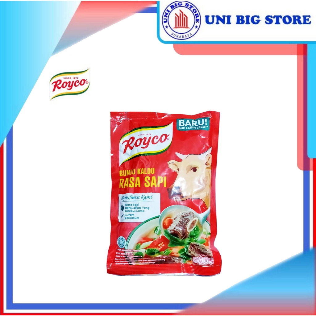 Royco Kaldu Sapi merupakan bumbu pelezat masakan yang terbuat dari bahan-bahan dan rempah pilihan, termasuk daging sapi pilihan yang direbus lama. Memberikan rasa kaldu yang mantap pada masakan Anda.