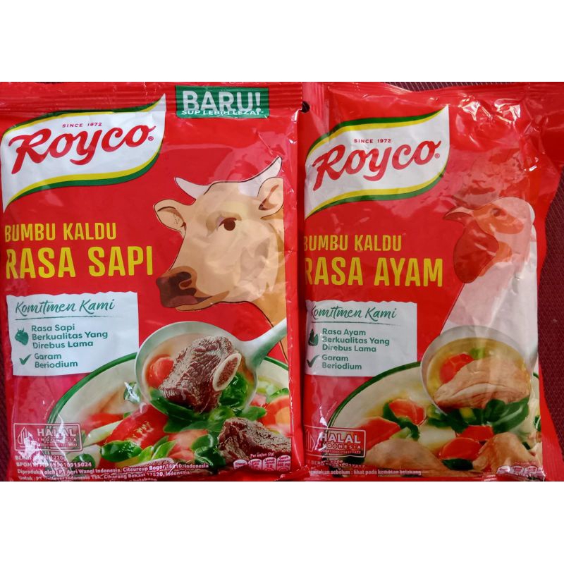 Royco bumbu penyedap makanan merupakan bumbu pelezat masakan yang terbuat dari bahan-bahan dan rempah pilihan, termasuk daging sapi& ayam pilihan yang direbus lama. memberikan rasa kaldu yang mantap pada masakan anda.