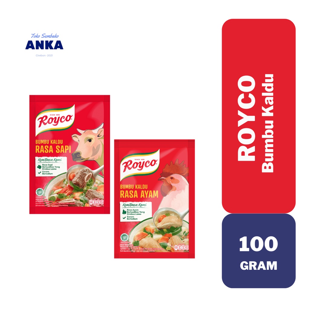 Paket ini berisi 1 Pcs Royco Bumbu Penyedap Makanan Rasa Kaldu Ayam / Sapi 100G