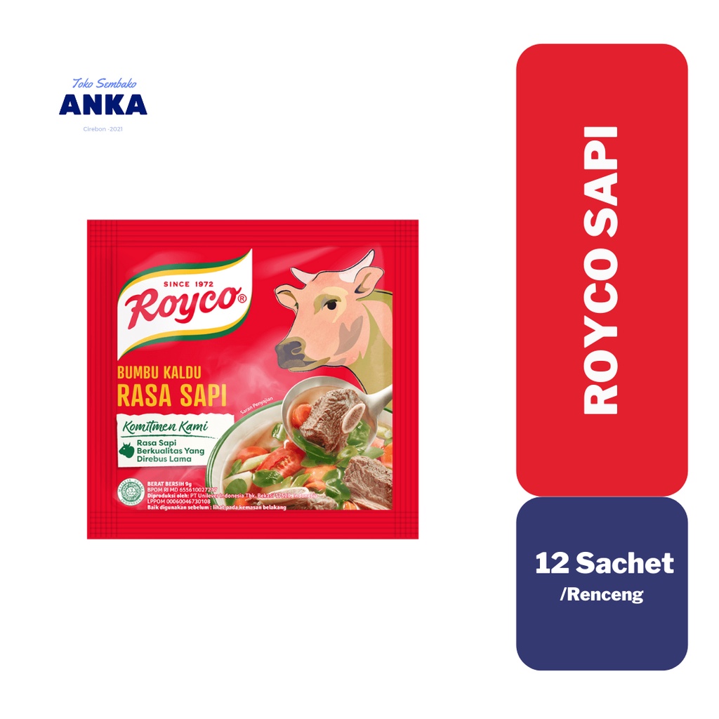 Paket ini berisi 12 Pcs Royco Bumbu Penyedap Makanan Rasa Kaldu Sapi 8Gram