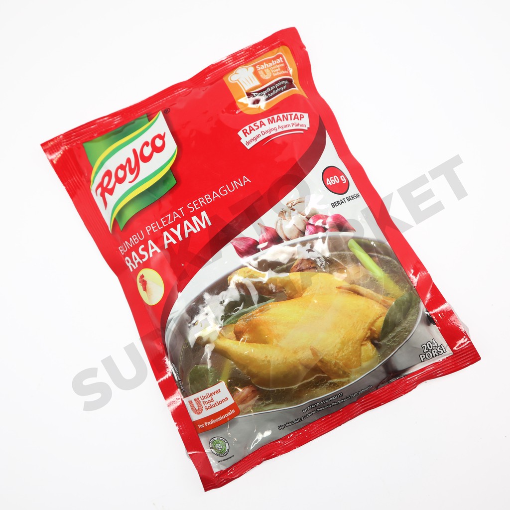 Royco Kaldu Ayam merupakan bumbu pelezat masakan yang terbuat dari bahan-bahan dan rempah pilihan, termasuk daging ayam pilihan yang direbus lama. Memberikan rasa kaldu yang mantap pada masakan Anda. Tambahkan Royco Kaldu Ayam ke dalam masakan rumah. Mudah larut dalam masakan.