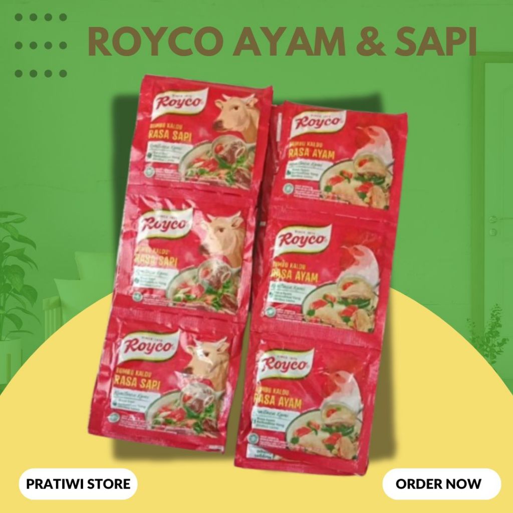 Royco Kaldu Ayam & sAPI dibuat dengan daging ayam & sapi yang direbus lama memberikan kaldu mantap dan rasa yang lezat untuk semua masakan