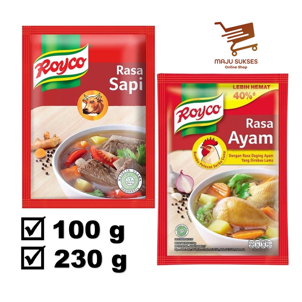 Merupakan bumbu pelezat masakan yang terbuat dari bahan-bahan dan rempah pilihan, termasuk daging ayam / sapi pilihan yang direbus lama. Memberikan rasa kaldu yang mantap pada masakan Anda. Tambahkan Royco Kaldu Ayam / Sapi ke dalam masakan berkuah, aneka tumisan, dan lain sebagainya.