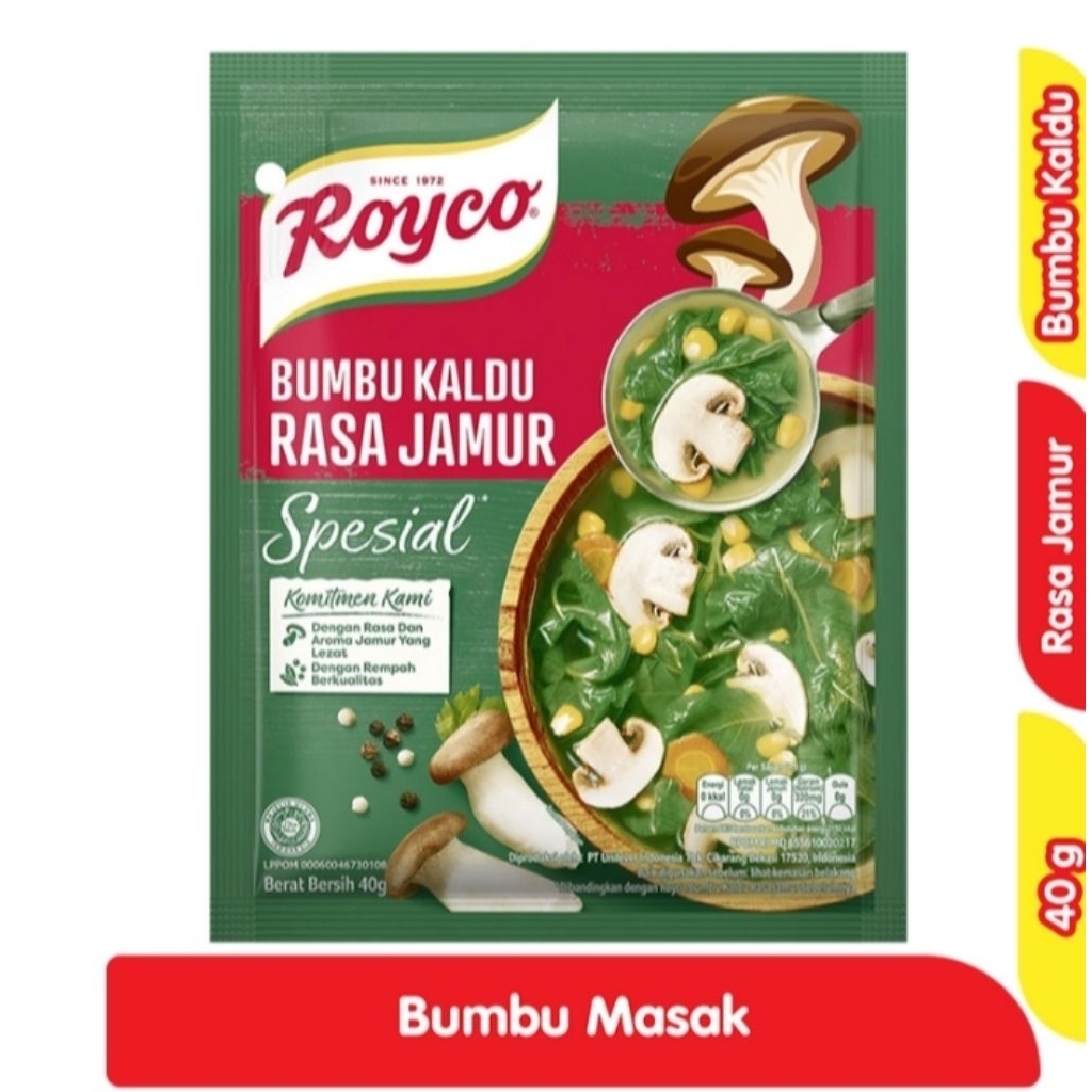 Produk kaldu jamur ini juga tanpa penguat rasa, pengawet, pewarna sintetik, dan rendah garam. Untuk hasil terbaik, tambahkan 1/2 - 1 sdm sesuai petunjuk penyajian. Royco berkomitmen pada kualitas dan edukasi tentang makanan bergizi seimbang, sesuai prinsip "Isi Piringku."