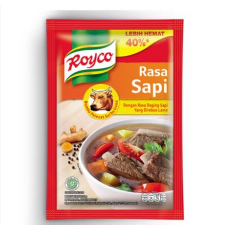 Kaldu Penyedap Rasa brand Royco rasa daging sapi kemasan sachet ukuran 230 gr.
