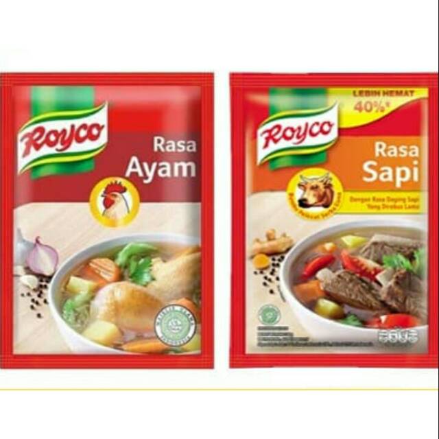 Royco penyedap rasa, bumbu ekstrak daging ayam dan sapi dibuat dengan perpaduan tepat antara daging segar berkualitas, bumbu dan rempah pilihan yang memberikan rasa dan aroma masakan dari daging asli sama seperti kaldu buatan dirumah.