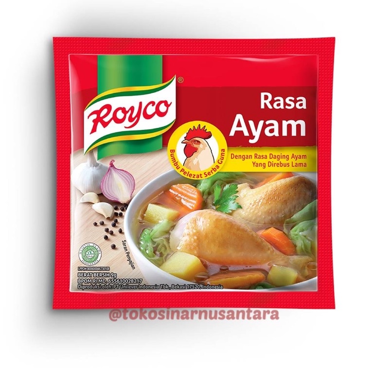 Royco Penyedap Rasa Ayam kemasan 8 gr. Untuk 1 renceng berisi 12 sachet. Bumbu penyedap untuk menambah cita rasa masakan anda.