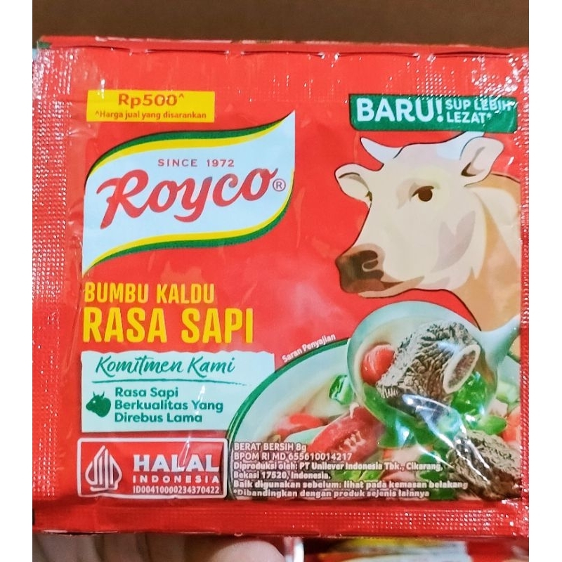 Royco 8 Gr Bumbu Kaldu Rasa Sapi Harga Per Renteng, 1 Renteng isi 12 Sachet, Exdate : 06.09.2025. Untuk Ketersediaan Produk Harap Mohon Chat Terlebih Dahulu. tks