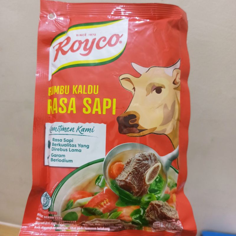 Royco bumbu kaldu rasa sapi atau kaldu ayam kemasan ekonomis 220 gram.