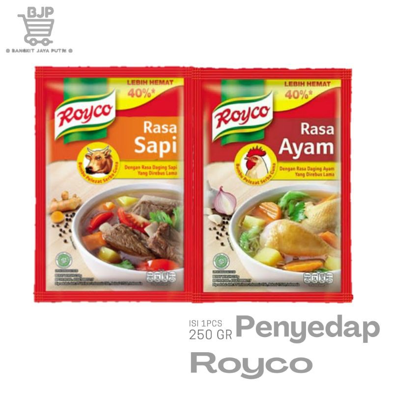 Royco ayam/sapi kemasan 230gr merupakan bumbu penyedap serba guna yang terbuat dari daging & rempah berkualitas sehingga dapat meningkatkan cita rasa masakan.