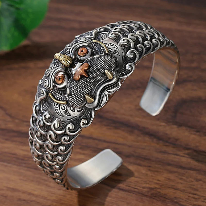 Rt Серебряный широкий браслет Tianlu Pixiu для мужчин, индивидуальный модный мужской браслет в китайском стиле