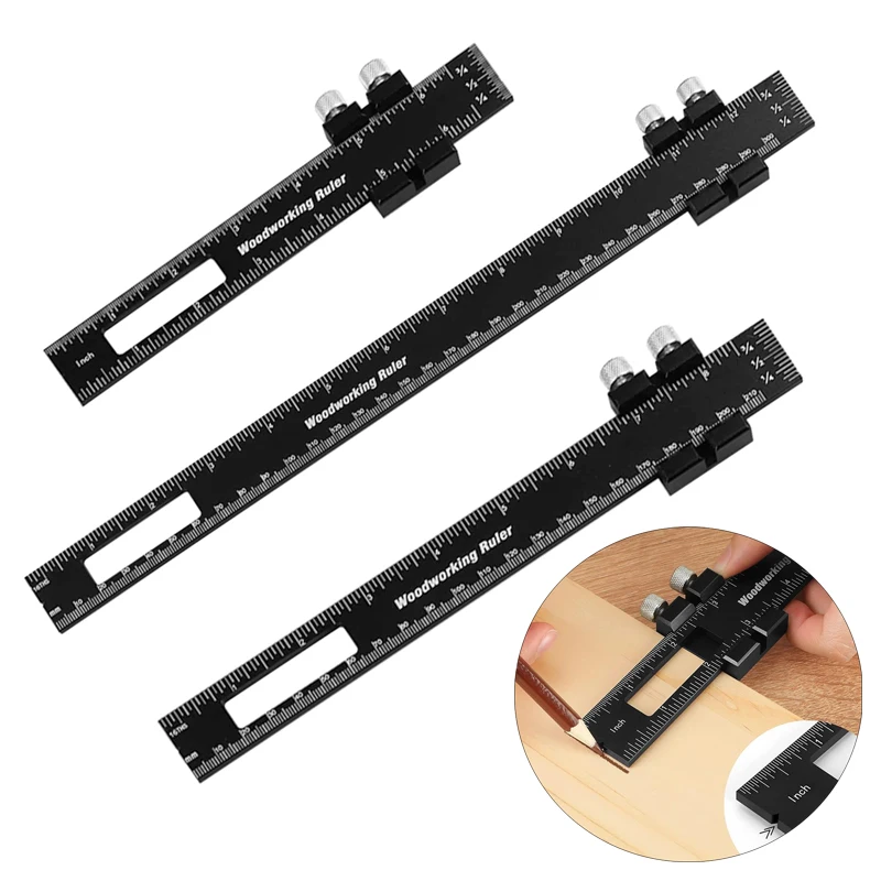 Ruler Woodworking Slide Ruler Measuring Stop Caliper Inch Tools Metal Marking Metric Scribing T-ruler Multifunctional Ruler