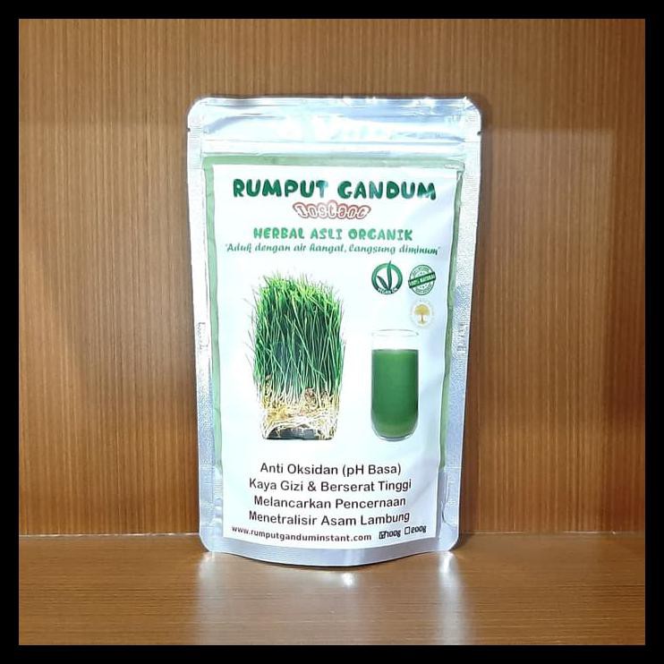Rumput Gandum Instant, bubuk ekstrak rumput gandum (wheatgrass), berat bersih 100gr (tidak termasuk packaging).