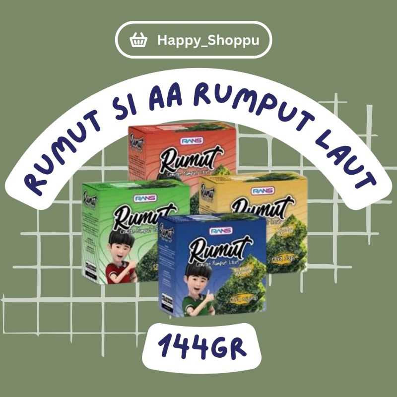 Rumut Cemilan Rumput laut yang terdiri dari 95% Rumput Laut, minyak nabati yang mengandung antioksidan TBHQ yang baik untuk tubuh. Mengandung 2% bumbu yang terbuat dari kedelai dan penguat rasa mononatrium glutamat.