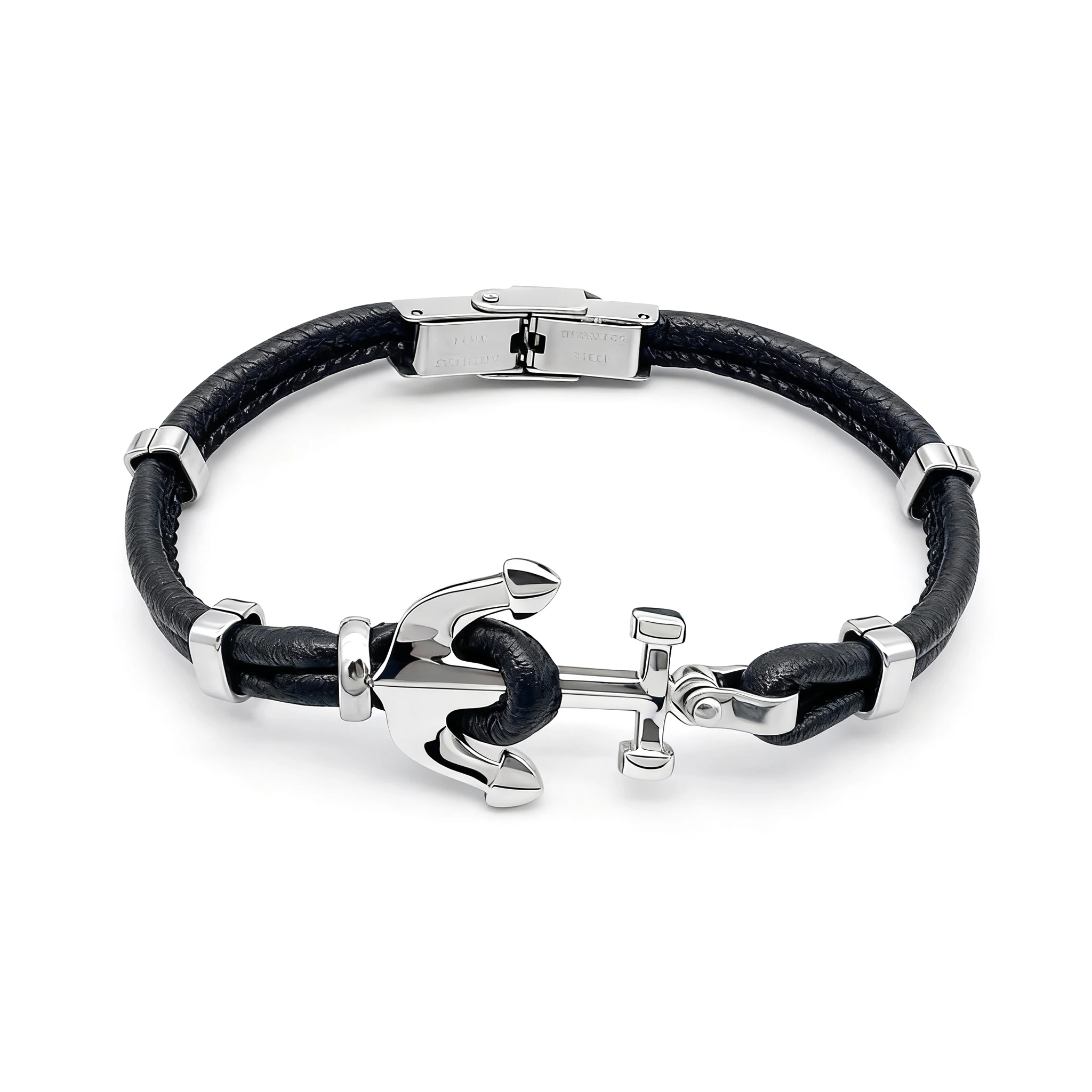 Runda кожаный и стальной браслет мужской черный плетеный браслет с якорем из нержавеющей стали регулируемая длина 22 см