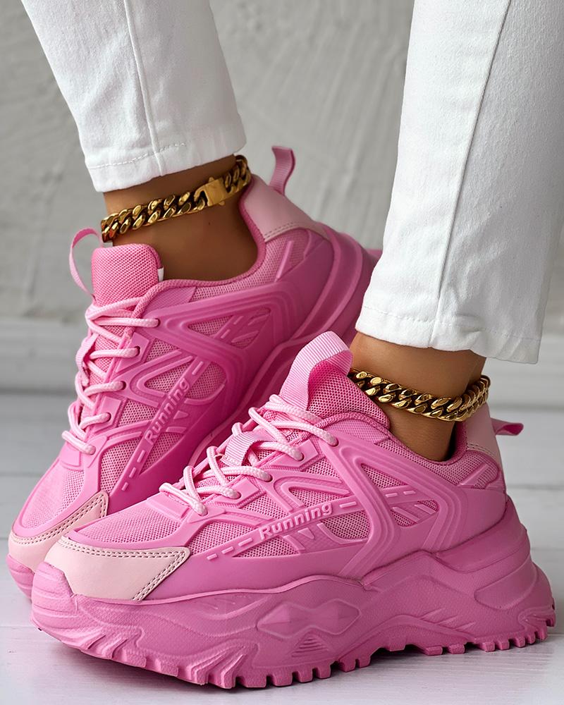 Running Pattern Lace-up Breathable Sneakers, Pink