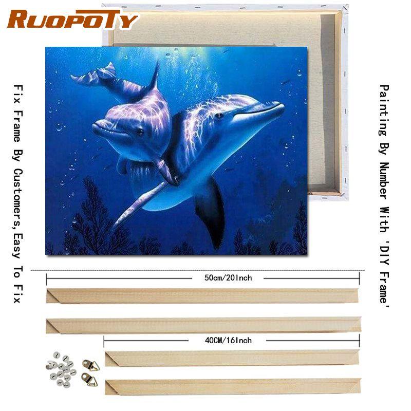 Ruopoty с DIY рамкой Животные DIY картина по номерам акриловая картина ручная роспись маслом на холсте для домашнего декора произведения искусства