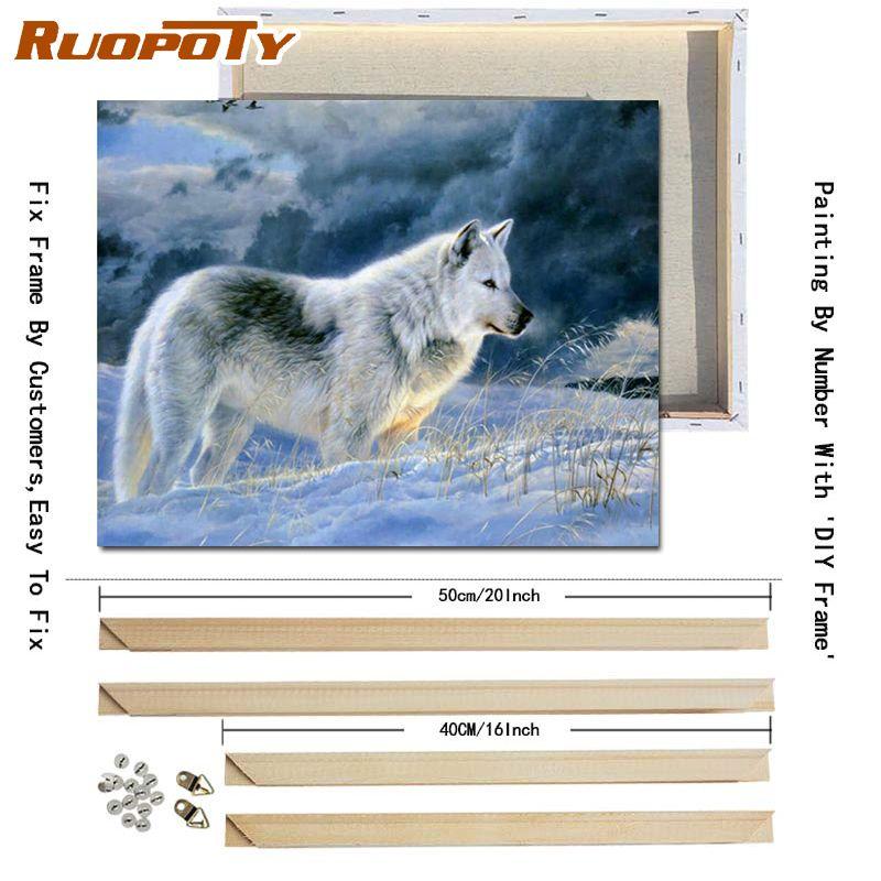 Ruopoty с DIY рамкой Животные DIY цифровая картина маслом по номерам красочная картина маслом Современная настенная живопись холст для домашнего декора