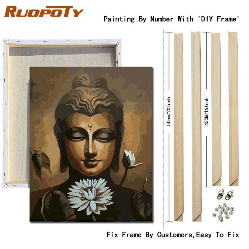 Ruopoty DIY Рамка DIY Картина по номерам Будда Картина маслом Раскраска по номерам Краска на холсте Ручная роспись маслом для домашнего искусства