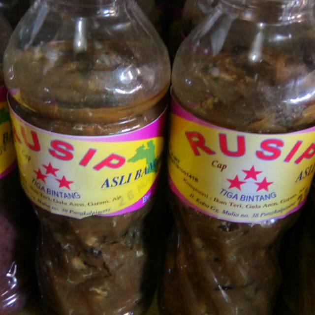 Rusip asli bangka terbuat dari ikan teri, gula aren, garam dan air. Cocok untuk sambal lauk pauk anda