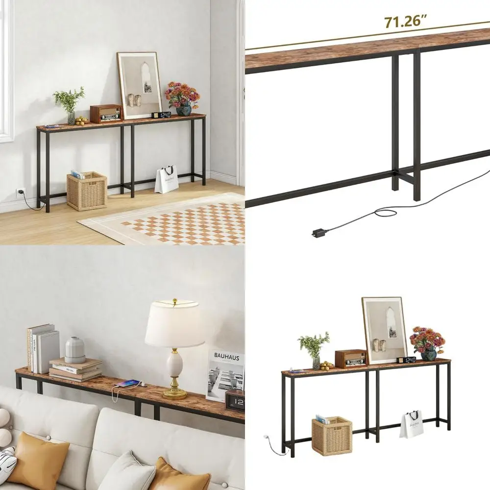 Rustic Brown 71.5 Console Table with Power Outlets and Charging Station for Sofa, Suitable for Entryway, Hallway, and Living Roo