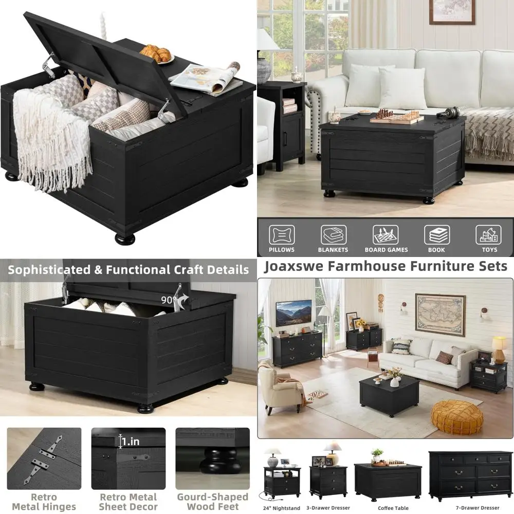 Rustic Large Living Room Coffee Table with Hidden Storage and Flip-Top Functionality