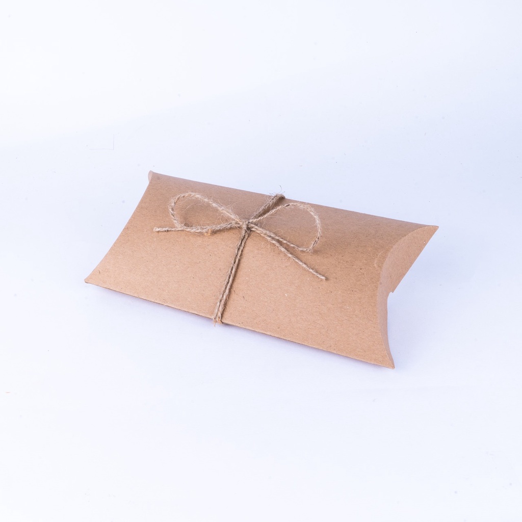 Rustic Pillow Box With Rope Dengan Model Bantal Cantik Yang Mudah Dirakit Dengan Bahan Kraft Lightweight Cocok Untuk Small Items Seperti Jewelry, Permen, Cincin, Dan Sabun.