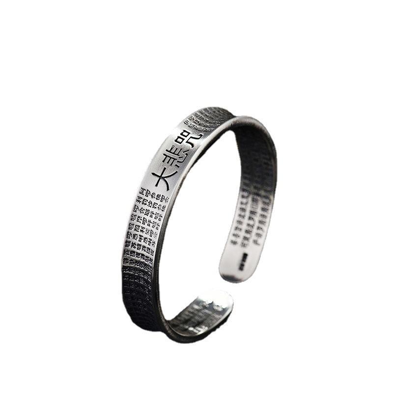 S999 Чистое Серебро Большое Проклятие Сострадания Серебряный Браслет Ретро Открытие Подарок для Мамы Пожилых Серебряный Браслет Браслет Браслет Adjustable size