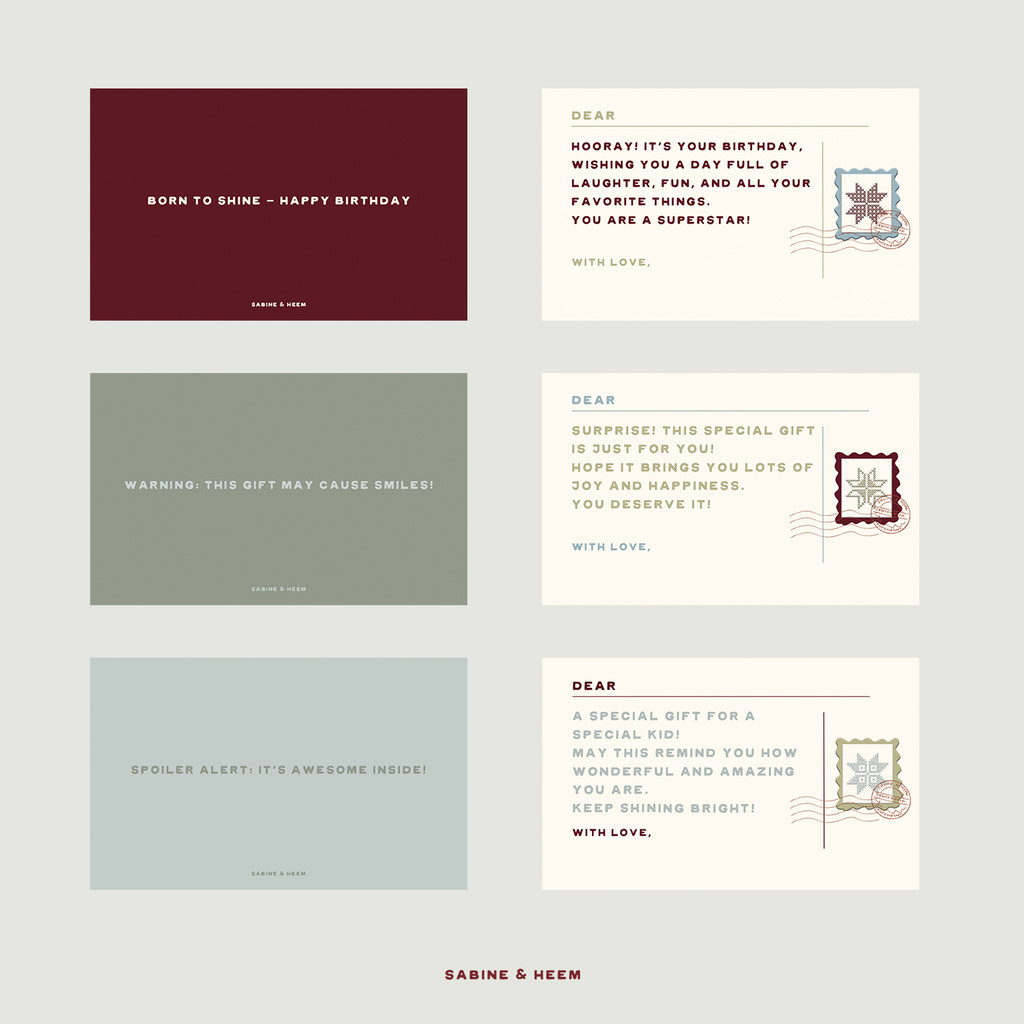 Kartu ucapan tidak dapat di custom, terdapat 3 varian warna dengan kalimat berbeda yang dapat dipilih.
